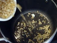 - Place the whole raw pecans in a dry pan and toast until fragrent, watch carefully so they don't burn! Then remove and cool slightly before roughly chopping. Set aside and start on the popcorn!