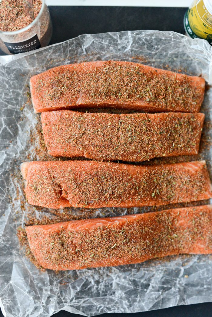Season generously with 1-1/2 to 2 tablespoons of blackened seasoning.