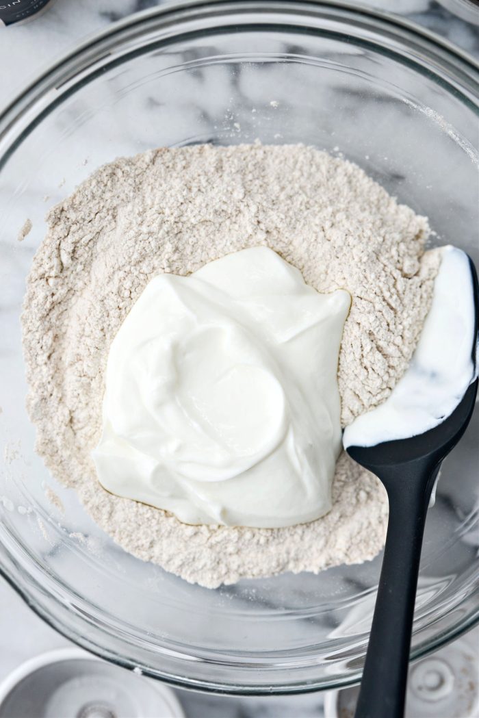 - Add in the yogurt and use a spatula to combine and shape into a ball.