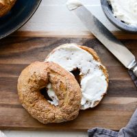 After slicing the bagel in half horizontally, lightly spray the cut side with olive oil spray. Preheat your air fryer to 360° and toast for 2 to 4 minutes. Swipe with some cream cheese (if desired) and sit back and enjoy!Buy the Cookbook: Simply Scratch : 120 Wholesome Homemade Recipes Made Easy Now available on Amazon »