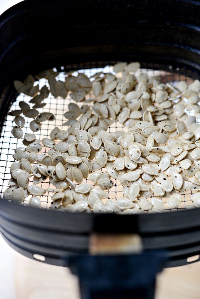Last year, I decided to “roast” pumpkin seeds in my air fryer. Best. Decision. Ever. The seed crisped up in 10 minutes! And then I snacked on them all week.