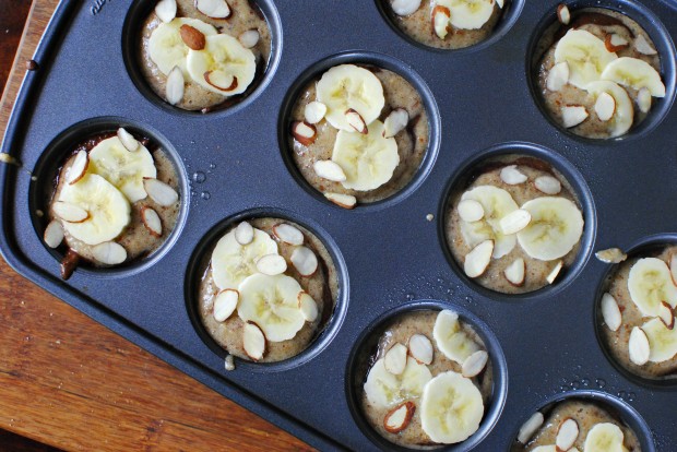 I love this recipe!!! My roommates don’t like the banana and almond on top but these tasty bites don’t need it to be awesome. I also like how much healthier these seem then just your normal banana muffins♡