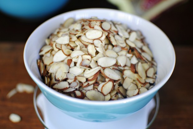 In the recipe it calls for 9 ounces of sliced almonds. I placed my bowl on the scale first before turning it on so the weight of the bowl wasn’t figured in to the weight of the almonds.