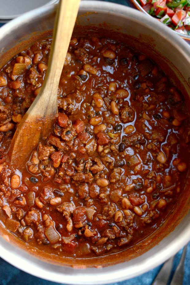 The sky is the limit! My family topped theirs with anything from cheddar to hot sauce to green onions. It’s all good! I will admit that I really love the pico with this robust chili, it adds a fresh flavor that just works.