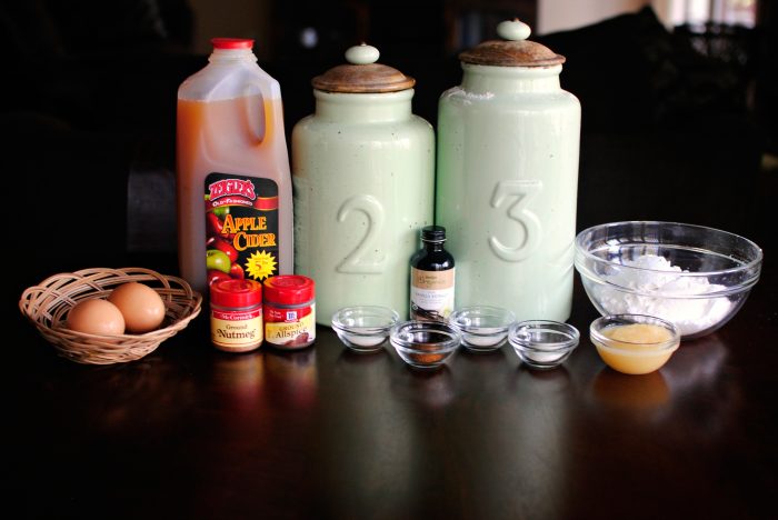 - apple cider – Try to look for fresh pressed apple cider (NOT apple cider vinegar). We’re lucky and live around the corner from a cider mill.