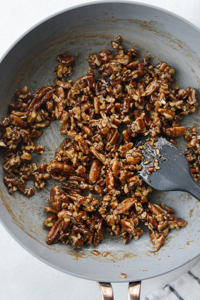 Add in 3/4 chopped pecans and stir often for 2 more minutes.