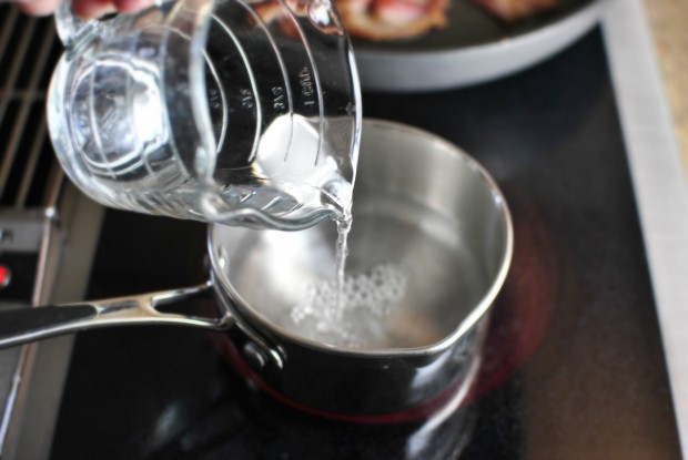 Pour a cup of water into a small saucepan and bring to a rapid boil.