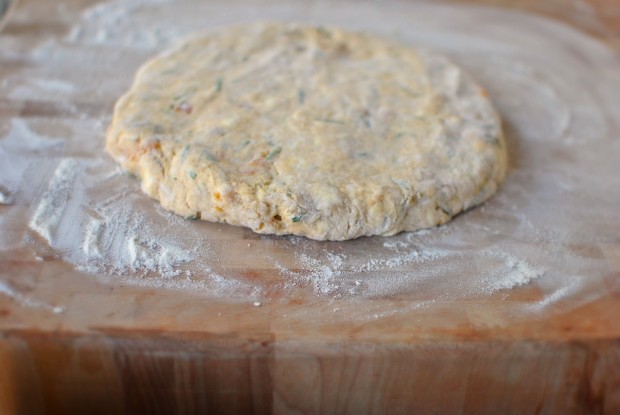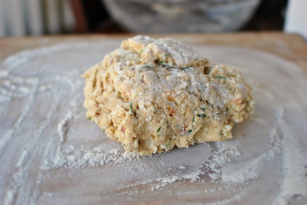 You’ll want to grab all-purpose flour, whole wheat flour, baking powder, sugar, salt, pepper, butter, a couple eggs, whole milk, Gorgonzola, dried apricots, bacon and chives. Pheeeewwww. I promise these are so worth it.