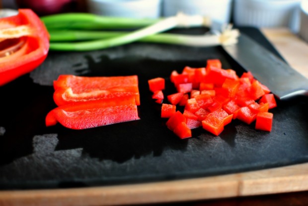 I sliced of the cheeks of half of a red bell pepper and dice it up.