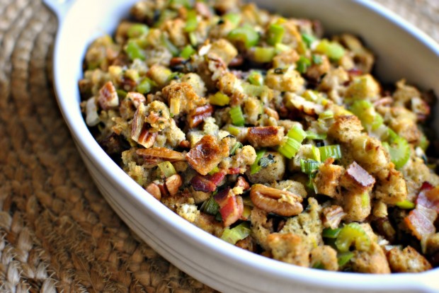 Why have I not thought of using bacon and pecans in stuffing before? Your fully-loaded stuffing absolutely looks like heaven in a baking dish and I’m going to suggest we make your recipe this year. Up until a few Thanksgivings ago, my family used stove top stuffing for stuffing our birds…so embarrassing…but we’ll make up for all of that this year! 🙂