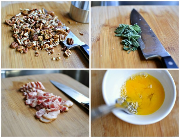 Like chopping up the pecans, sage and bacon… and since she was doing such a fine job I even beat up an egg.