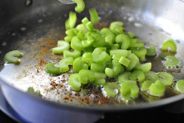 Moving back to the pan, drain off all but two tablespoons of the fat before dropping in the celery.