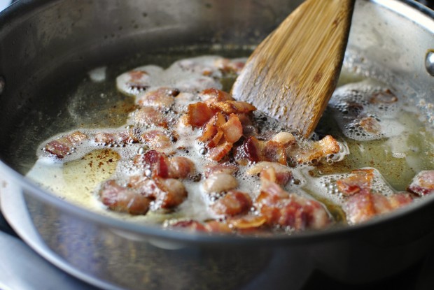 Remove the bacon to a paper towel-lined plate to drain. Ahhhh crispy bacon-y goodness.