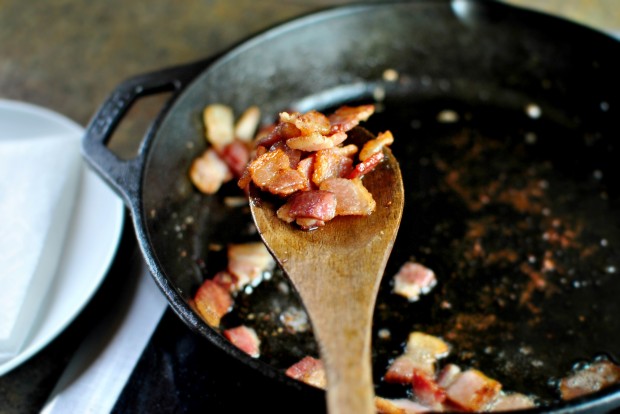 Throw it into a cool skillet and turn the heat to medium and slowly render out that delicious bacon fat.
