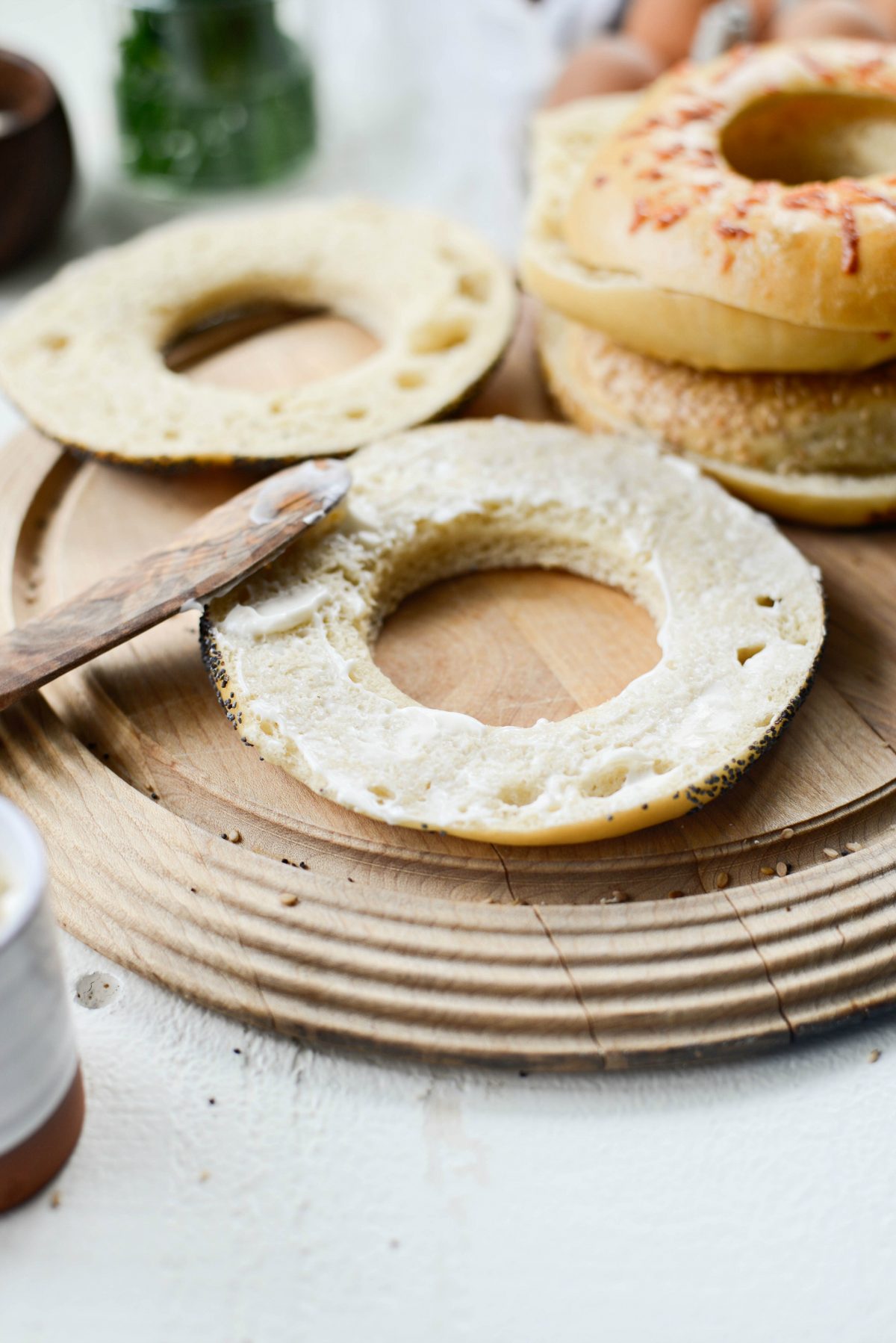 However my grown up years I do it differently. Because bagels! Bagels are far superior to regular old bread, they come in different flavors with an array of fun toppings. Pick and choose your own adventure here. Like sweet and savory? Try a French toast bagel or cinnamon and raisin. Like it cheesy? Then go with an asiago or cheddar and jalapeño. Like seeds? Sesame and poppy seed and of course, everything bagels.