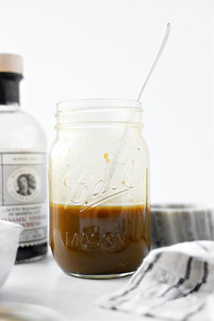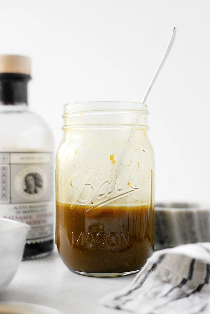 This absolutely incredible (and EASY) balsamic honey dijon vinaigrette is ready in less than 5 minutes. It’s perfect drizzled over grilled veggies, on your favorite salad or used as a dressing for pasta salad.