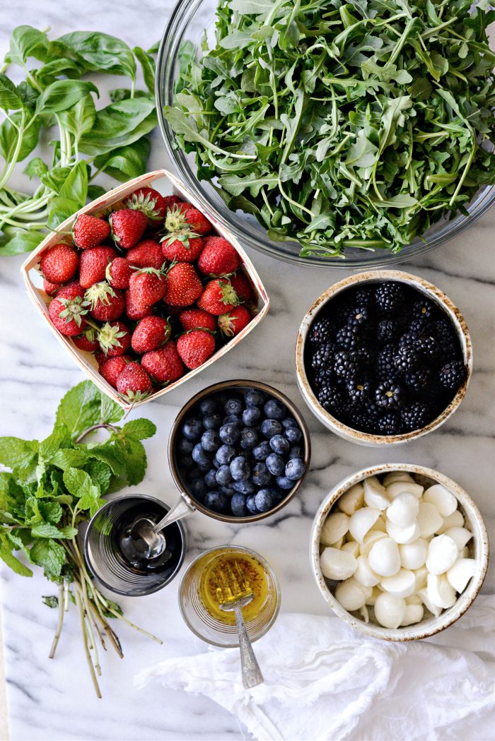 Top with 12 ounces blackberries, 12 ounces strawberries and 6 ounces blueberries. Then scatter with 8 ounces (halved) ciliegine mozzarella.