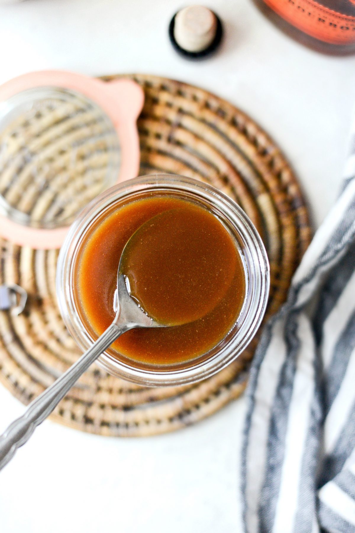 If you remember my homemade caramel sauce, then you may recall that it doesn’t require a candy thermometer and is pretty effortless. This bourbon salted caramel sauce is no different.