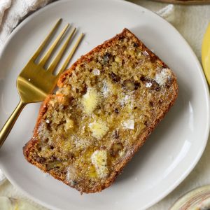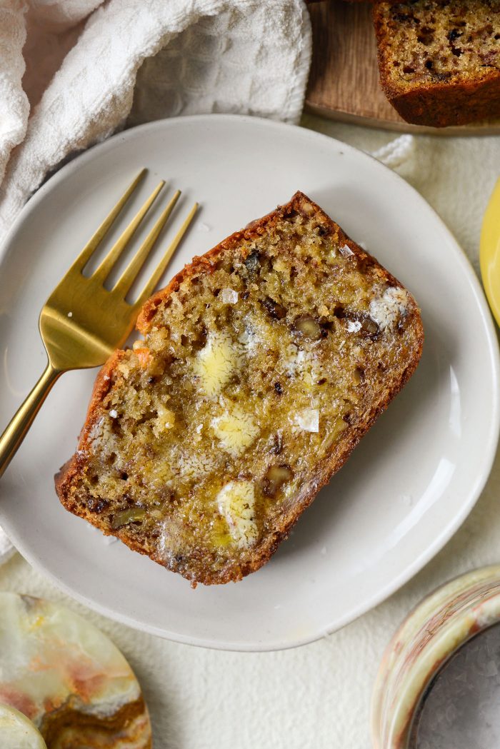 Heaven is a slice of freshly baked banana bread, slathered in butter with a sprinkle of Maldon salt.