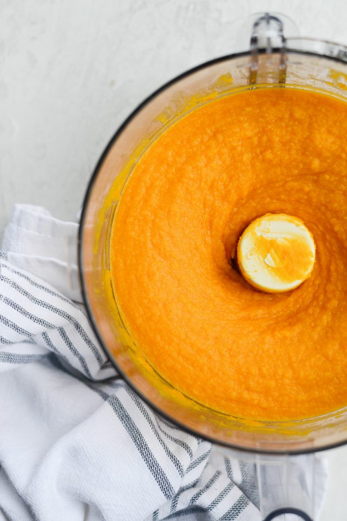 First thing to do is make your purée. Sure, I suppose you can purchase frozen winter squash puree at your grocery store, but you’ll miss out on the glorious smell of it roasting in the oven! I use this method and it’s so easy. I prefer to make my purée in advance (and can be frozen!) so it’s ready for when I need it. And this also why I don’t include the time in the recipe printable.