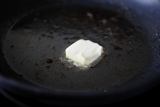 - Roughly chop the bacon and set aside. Add in the a tablespoon of butter to the bacon fat and heat over medium heat.