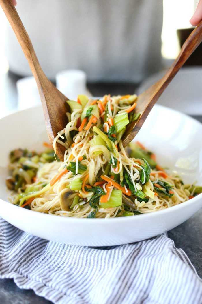 I love noodles. Give me a bowl of noodle with a butter or olive oil, salt and pepper and I’m happy. Sprinkle it with fresh Parmesan cheese and I’m over the moon. Stir-fry noodles with a ton of fresh veggies and I’m blissed out. And that’s exactly how I felt yesterday after eating a bowl of this Chinese vegetable noodle stir-fry for lunch.