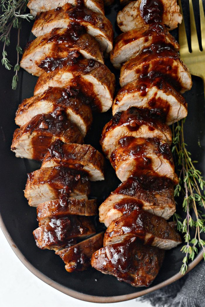 Transfer the glazed pork tenderloin to a cutting board and let it rest for 5 to 10 minutes under tented foil. The internal temperature will rise several degrees during the resting stage.