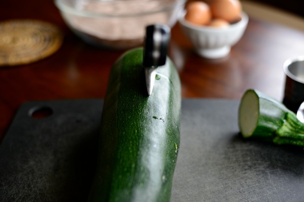 Since his last veggie-drop I’ve already made a few loafs of zucchini bread and he keeps coming by with more! So I figured I’d turn my traditional zucchini bread recipe into a chocolaty one. Because who doesn’t like to eat their dessert and a serving of vegetables at the same time? (kidding)