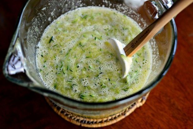Add in the 2 cups of grated zucchini and mix until just about incorporated.