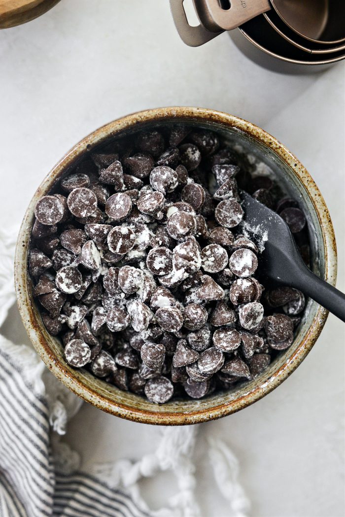 Toss 2 cups of chocolate chips in with 1/2 tablespoon flour.