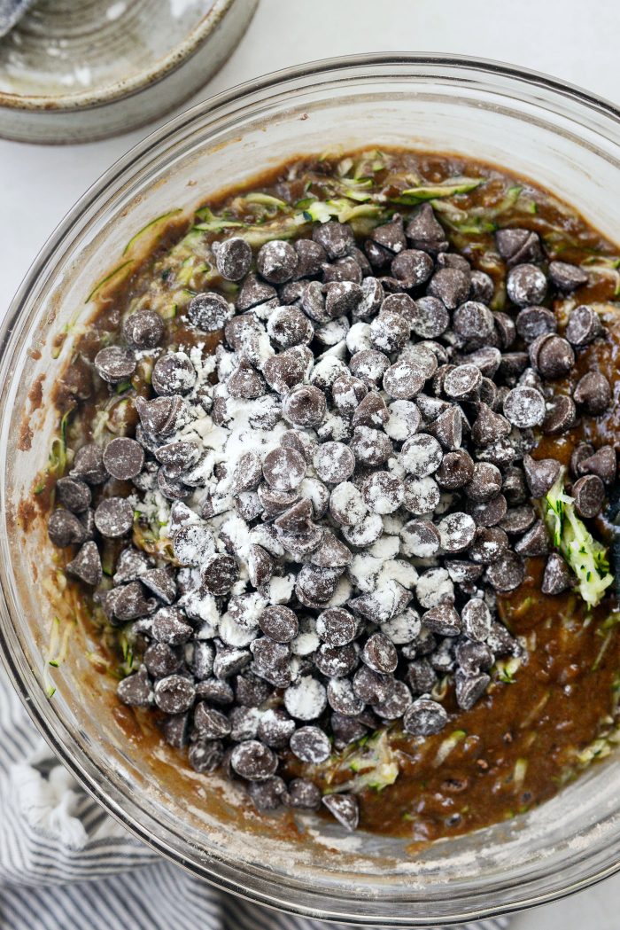 - Toss the chocolate chips with a little flour (about 1 to 1½ teaspoons) before adding them into the zucchini bread batter. Stir until the chocolate chips are throughout.