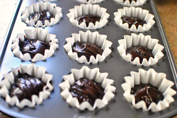 Next, divide the cake batter among two muffin pans lined with cupcake liners. Bake at 350° for 15-18 minutes or until a tester comes out clean.