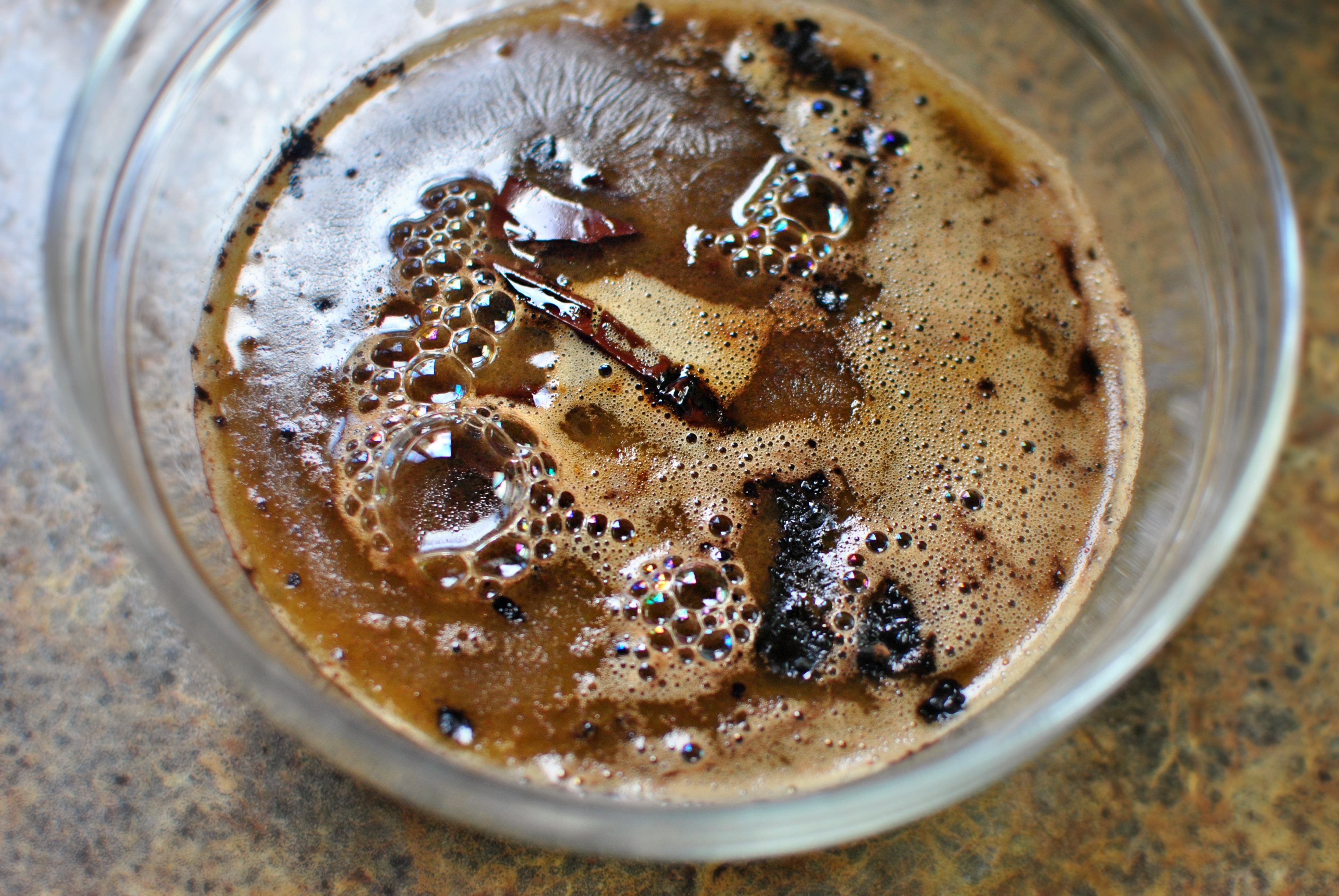 And then let it steep. The hot liquids will soften the chocolate and dissolve the coffee granules. So when you stir it all up it will be gloriously smooth. Now scoot that off to the side for a moment.