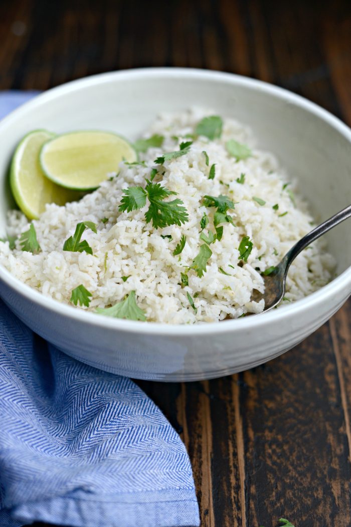 Besides using in burritos, enchiladas, tacos or in chicken or steak fajita bowls, below is a list of some flavorful main dishes to serve this incredible cilantro lime rice with.