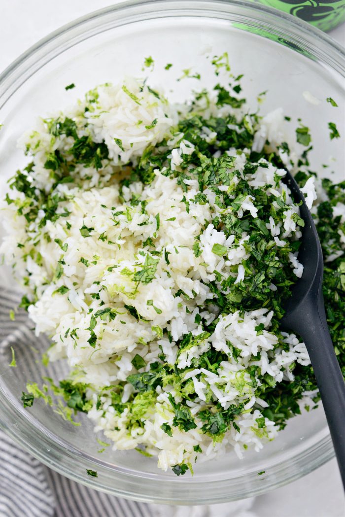 - Once the rice is cooked, fluff it up a bit with a fork. Then transfer it to a mixing bowl and add the finely chopped cilantro, lime zest, the juice of half a lime and 1 teaspoon olive oil.