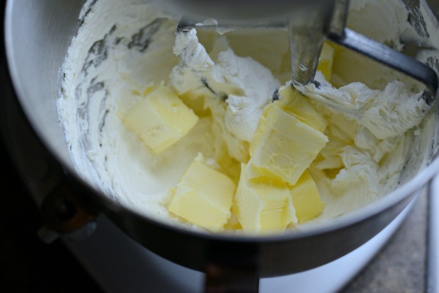 - Use a rubber spatula to scrape down the sides before adding in the butter and vanilla. Blend on low speed until combined with the cream cheese.