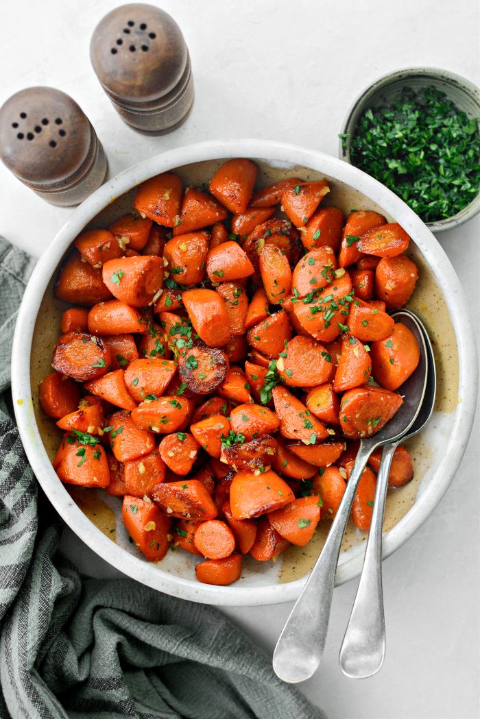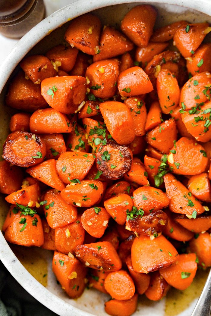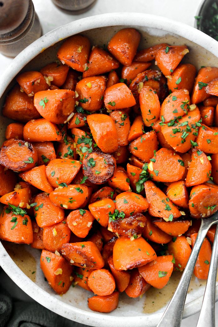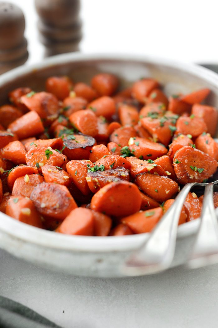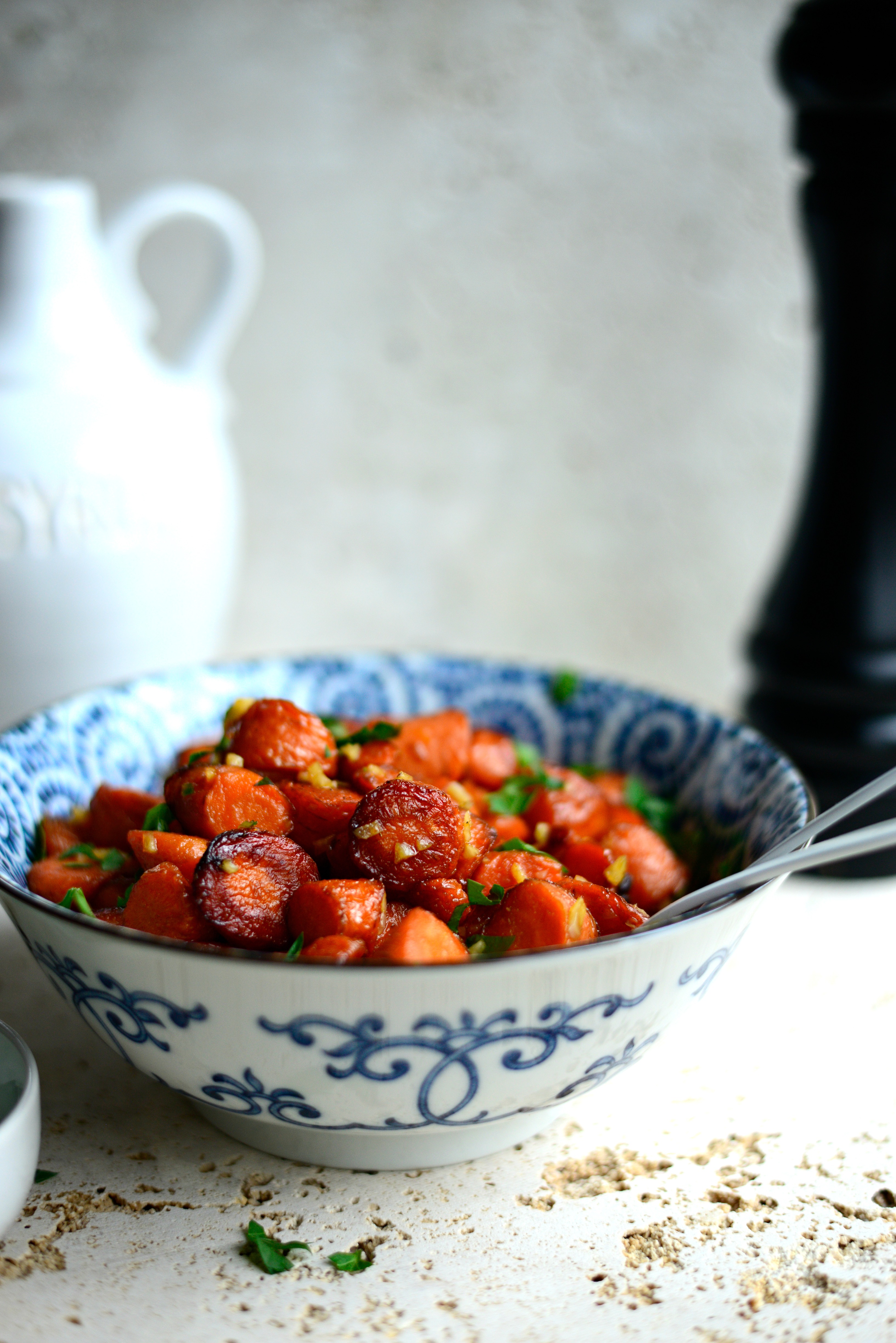 As a kid, I would look at you like you were crazy if you suggested for me to put one single bite of cooked carrots in my mouth. However now I absolutely love them. There’s something magical about carrots tossed with garlic and glazed in maple syrup. And this recipe is perfect for my dairy-free friends because I use un-refined coconut oil instead of butter – and you won’t notice the difference. Plus the coconut oil gives these carrots another added layer of flavor.