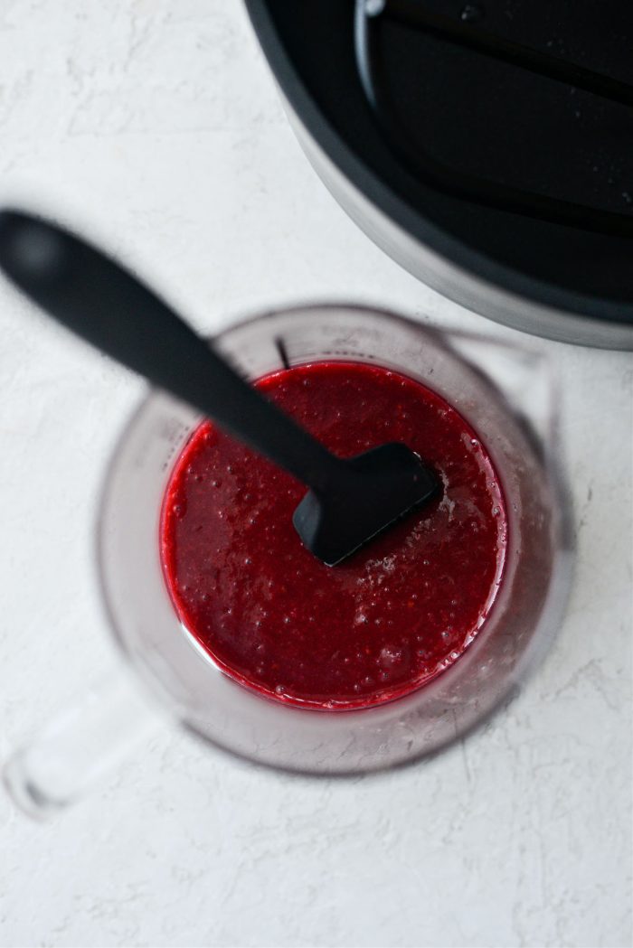 If you have an immersion blender use it to puree the cranberries. Otherwise you can add it to a blender, remove the center plug from the lid, cover it with a clean kitchen towel and puree until smooth.