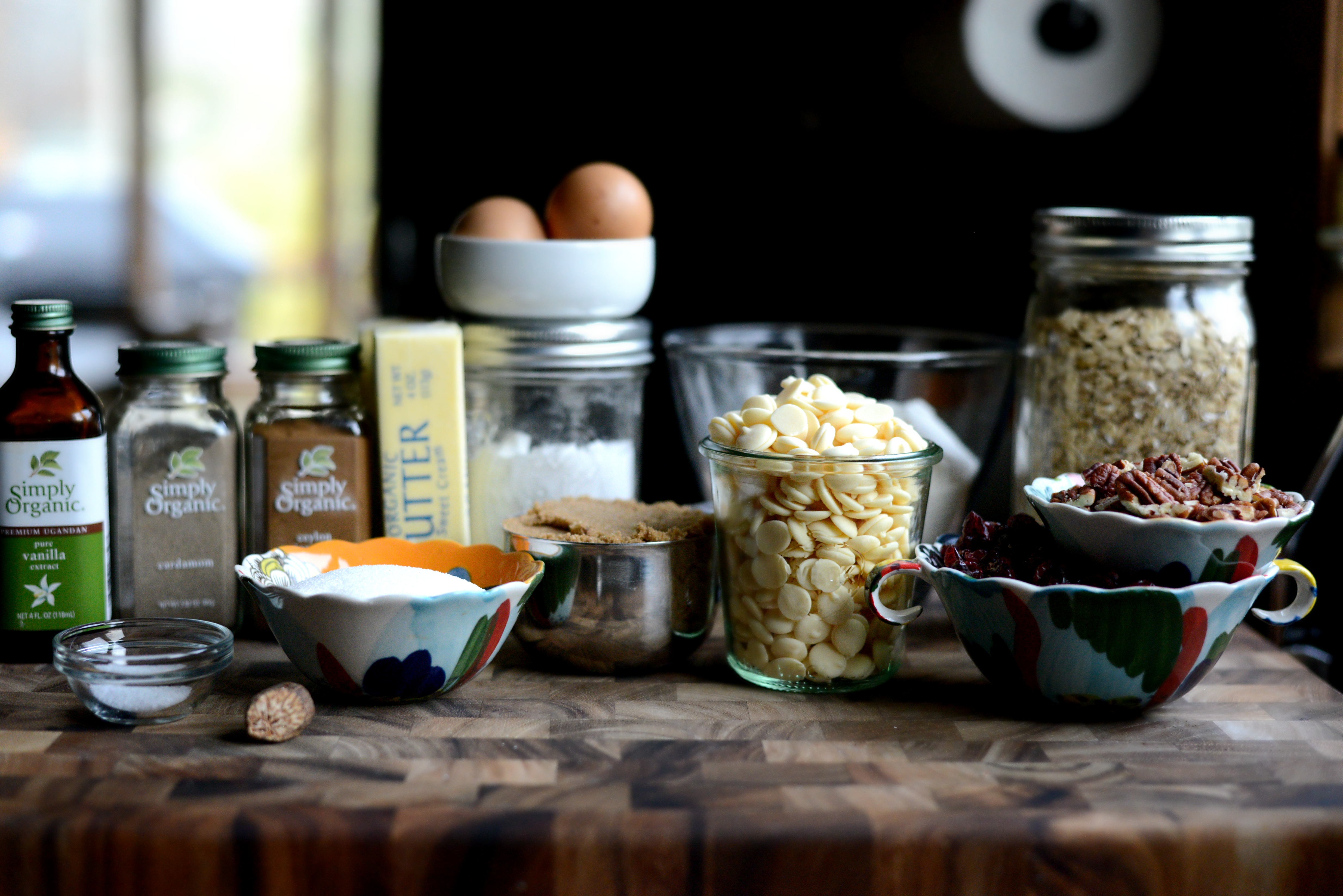 What makes these cookies different from the 8,347 other cranberry white chocolate chip cookies out there on the interweb? I spice mine with cinnamon, cardamom and nutmeg. This spice combo adds a little bit of somethin-somethin to these already yummy cookies. They’re festive and my daughter wanted me to tell you that she isn’t the biggest fan of oatmeal cookies and that these are GOOD! Awww thanks, Haileigh!