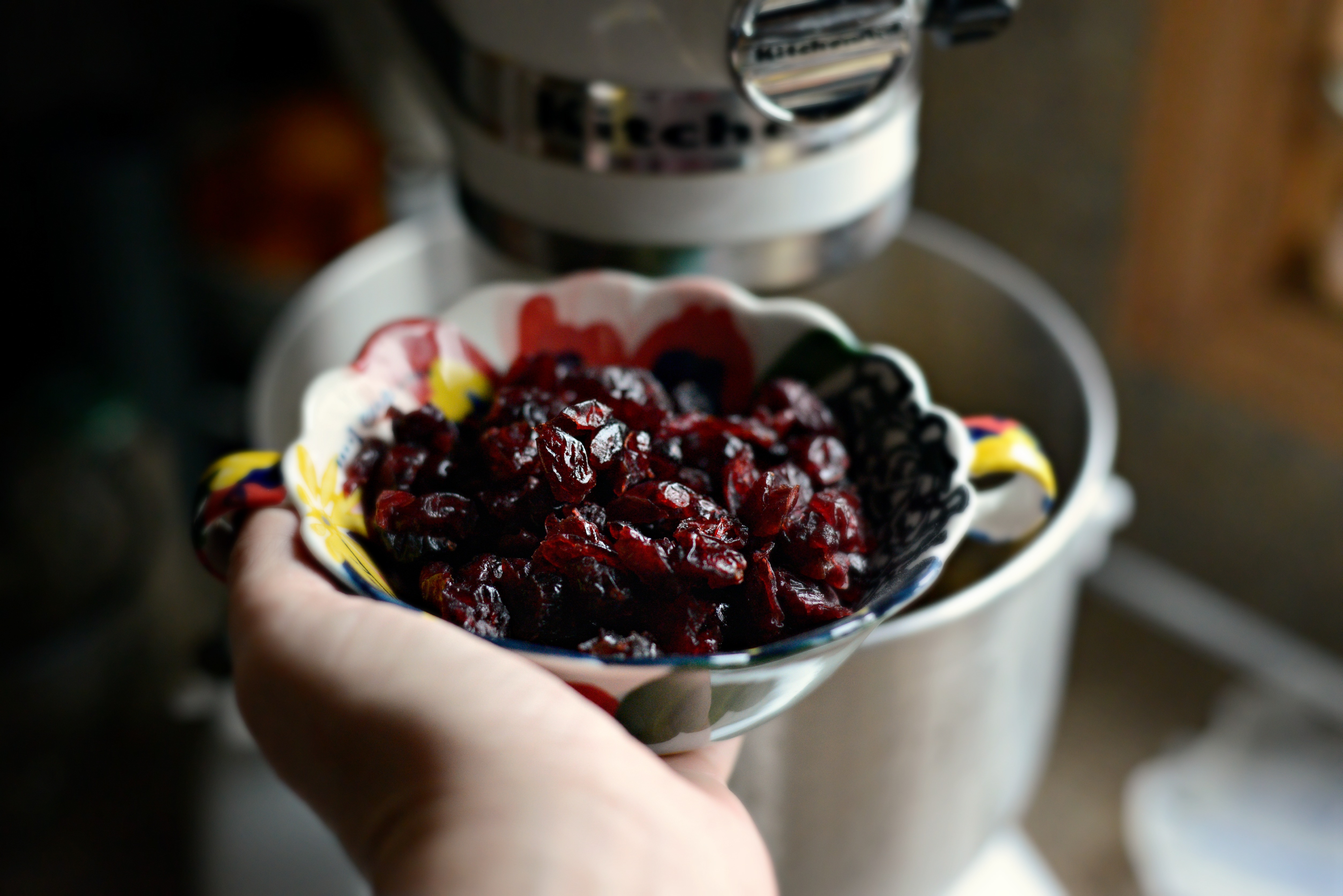 Once combined… resist the urge to grab some and eat it. At least wait until the cranberries, nuts and chocolate are added in. YUM.