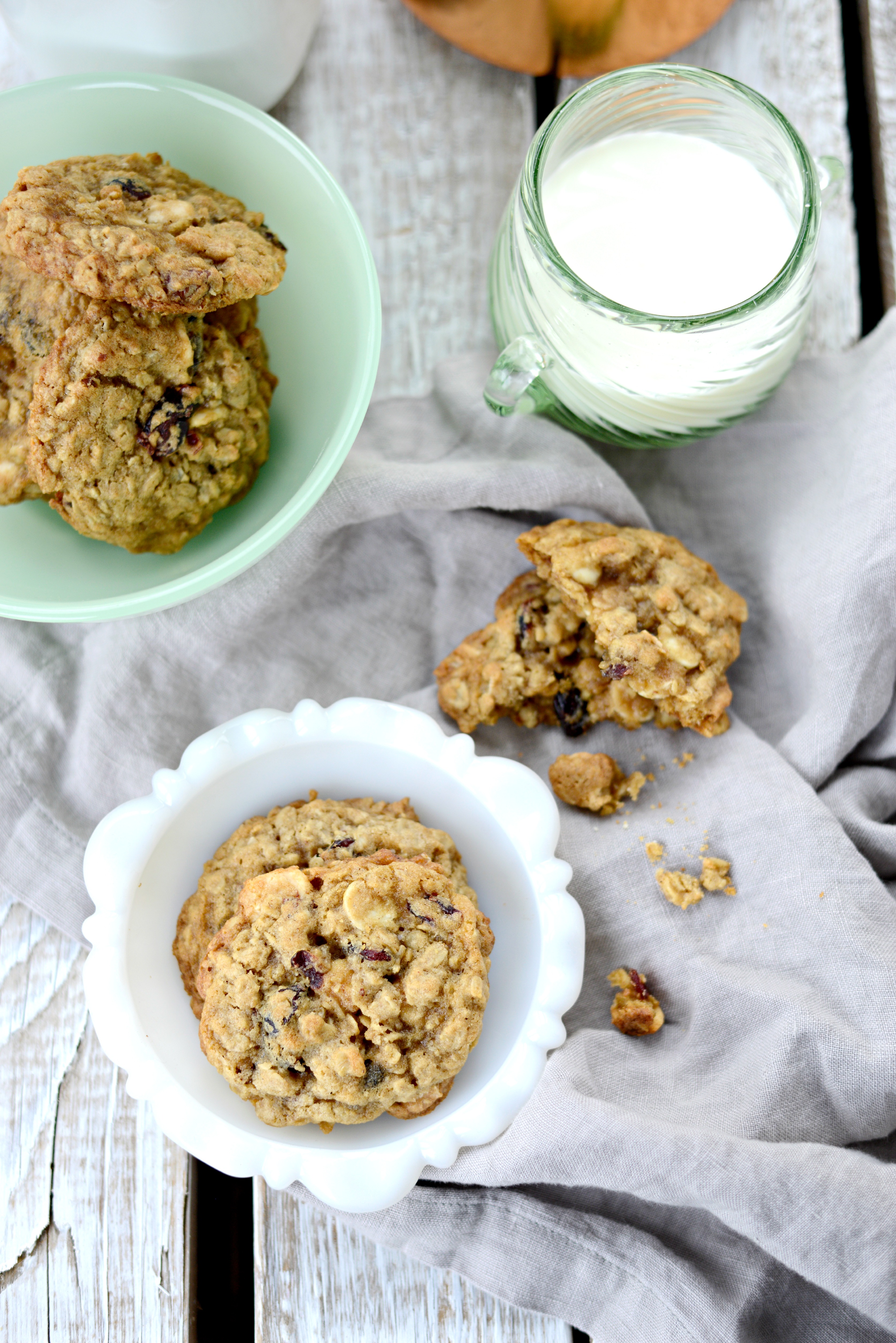Truth: I was never a fan of warm cookies as a kid, but then again I also had to drank orange juice with my cookies (don’t even ask). But oh how the times have changed. I still like my cookies the next day when the chocolate chips have hardened back up, but I really, REALLY like a warm gooey cookie. These cranberry white chocolate oatmeal cookies are dreamboats that didn’t disappoint, cookies rarely do.