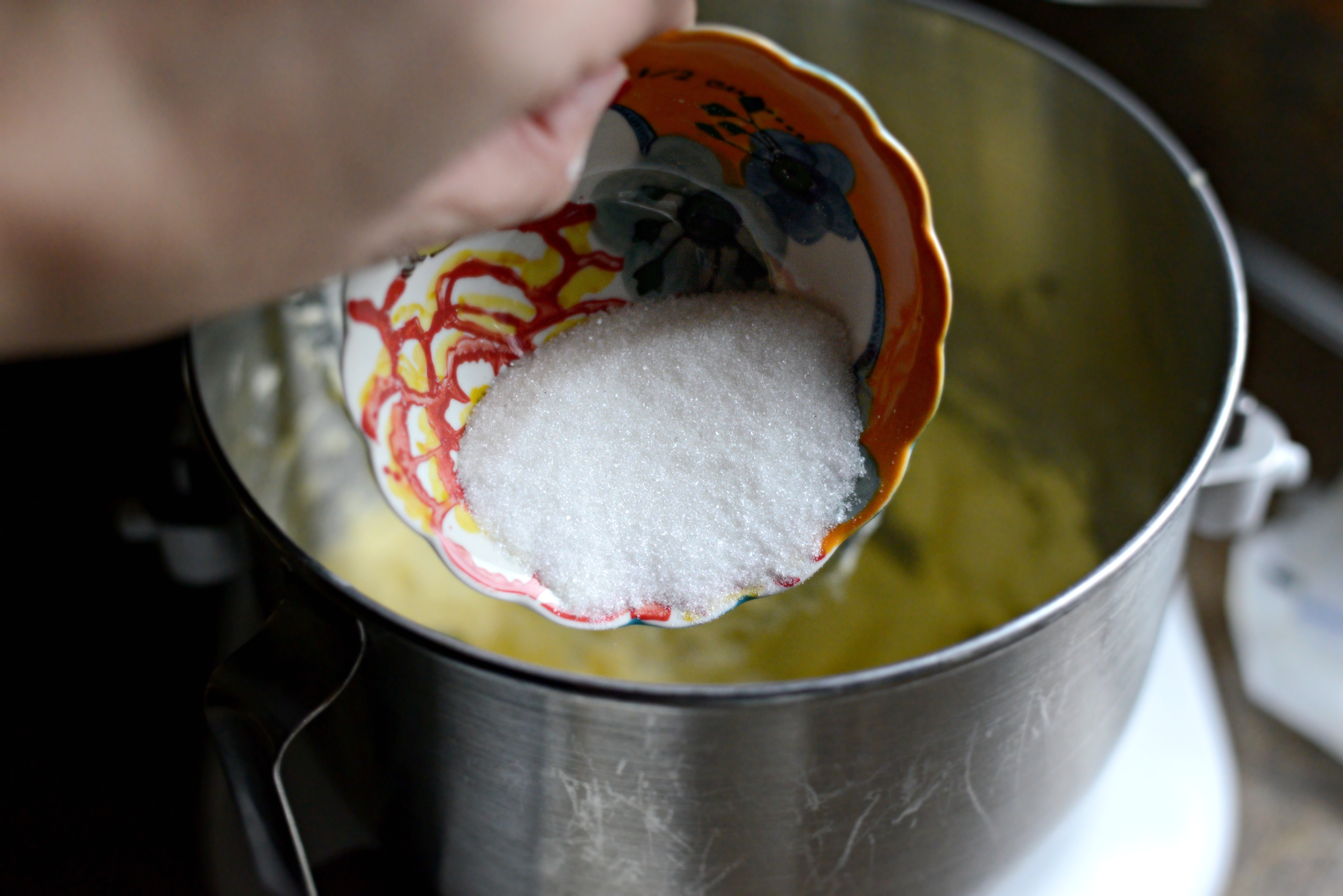 In the bowl of your mixer, fitted with the paddle attachment, add two sticks (1 cup) of softened unsalted butter.