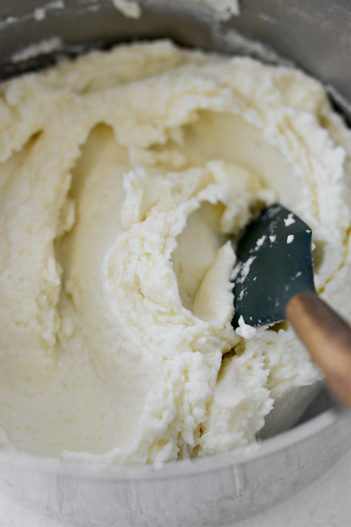 - To the riced potatoes, add the butter and 1 cup half and half. Stir to combine, adding more half and half until desired consistency. (I usually end up using 1 to 1½ cups total)