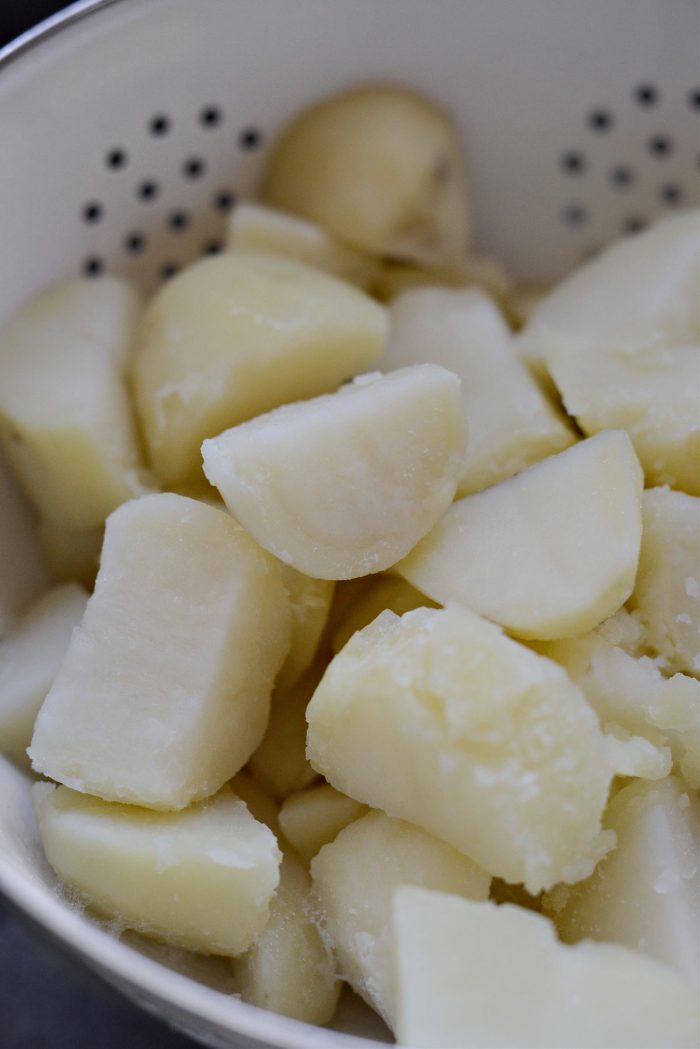 - Drain the cooked potatoes into a colander.