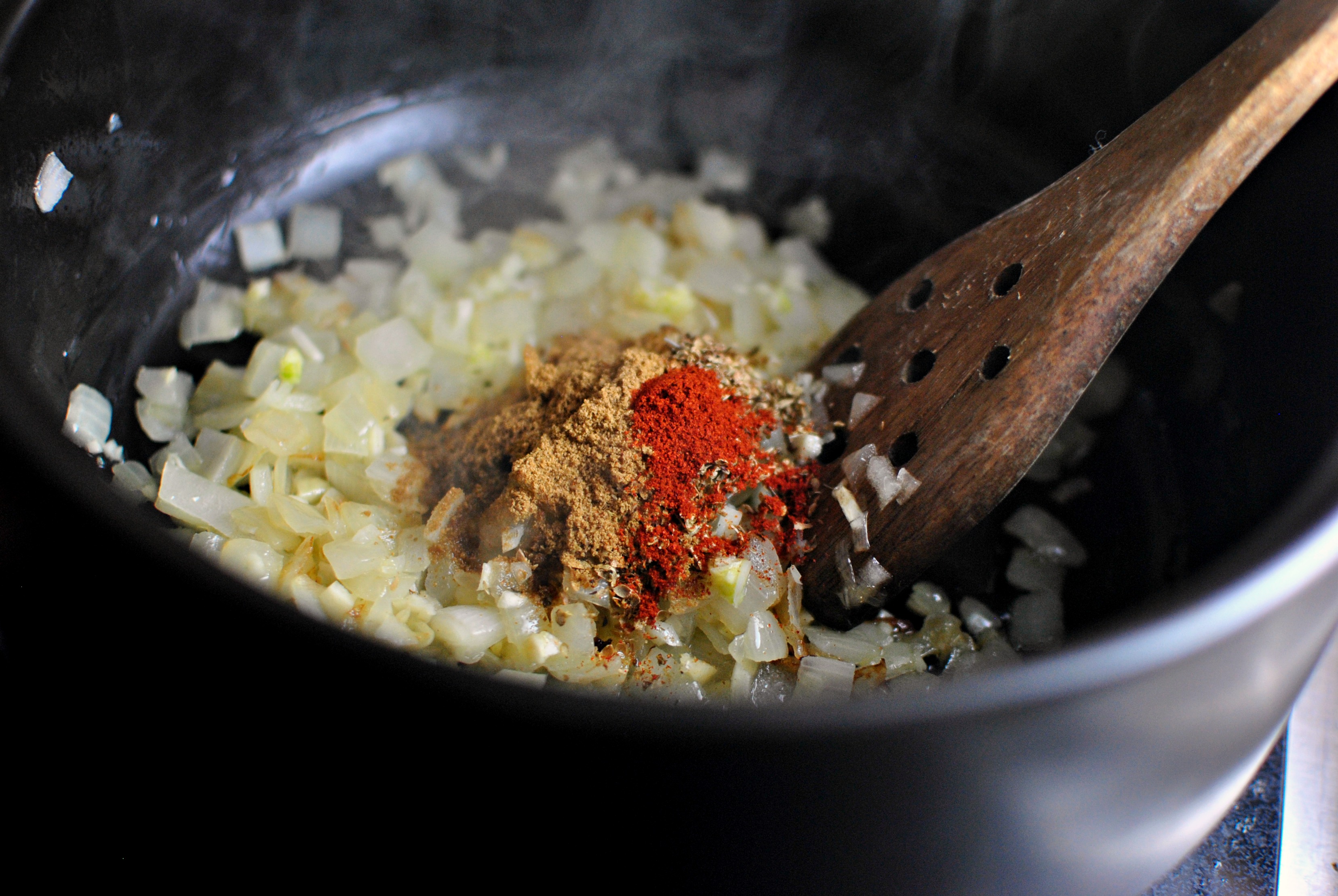 Once cooked, measure and add in 1 teaspoon ground cumin, 1 teaspoon oregano (mexican oregano if you have it), 1/2 teaspoon white pepper and 1/4 teaspoon cayenne pepper.