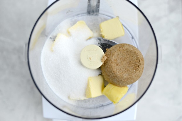 Don’t get me wrong, I do love my mixer, but it’s always fun to switch things up a little. Anyways, add 6 tablespoons of unsalted butter to your food processor that’s fitted with the sharp-as-heck blade attachment.