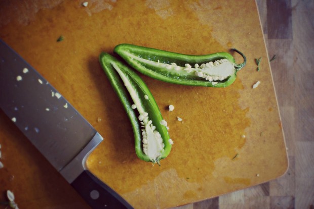 And stuff them into each of the jars. These pickles aren’t crazy-blow-smoke-out-of-ya-ears hot… but just a smidgen. It’s good stuff, promise.