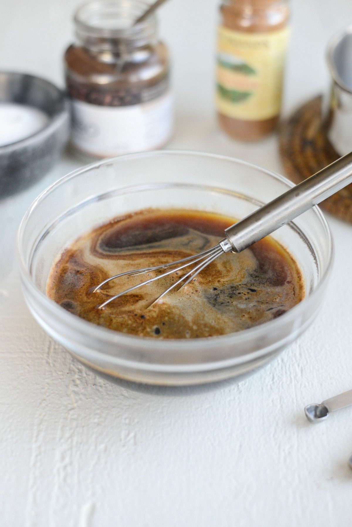 - Meanwhile in a heat-safe bowl, add the espresso powder, cinnamon and salt. Pour in the hot water and stir to combine. Set off to the side.