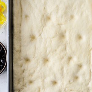 You can top it with any desired toppings you wish! From classic pepperoni to supreme, this focaccia pizza dough can handle it all. However, if you’re looking for my focaccia bread recipe, click here.