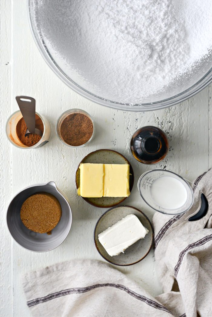 - In the bowl of your stand mixer fitted with a paddle attachment, add the butter, cream cheese, brown sugar, vanilla, cinnamon and nutmeg. Mix well on medium-low speed until thoroughly combined.